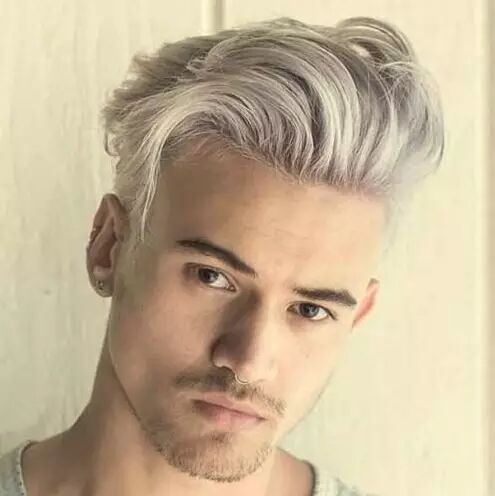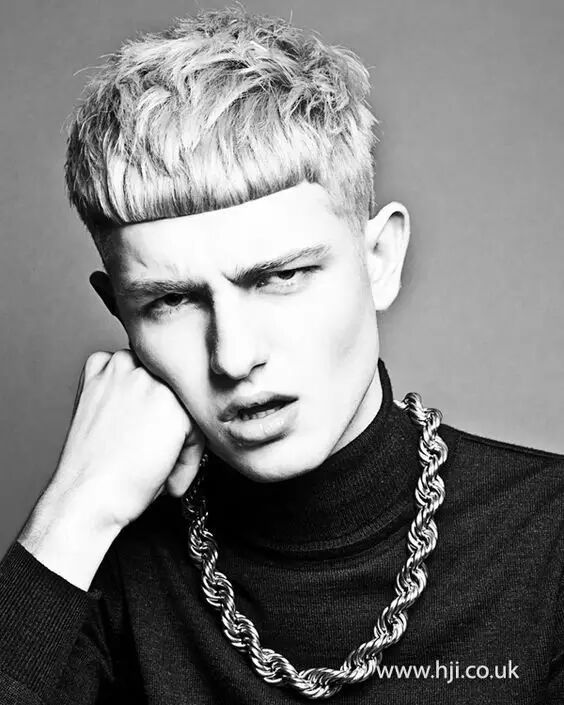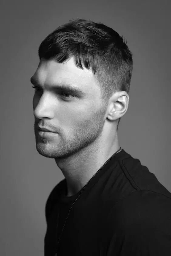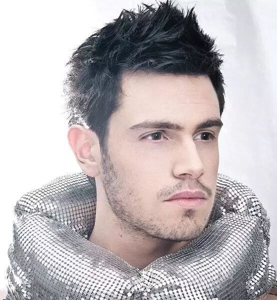 这款发型着重于突出五官,头发削短,适合五官立体的男生