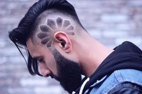 油头雕刻,根据自己的喜好来留出自己想要的头发长度,其余区域全部剃光进行雕刻。