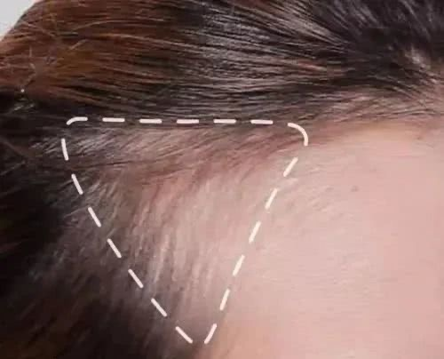 那怎么判断自己的M型发际线是精致小巧的猫耳朵还是大三角呢?这里要运用三庭五眼标准+面积判断法。