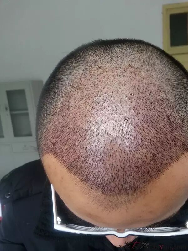 2/如果前额脱发已经非常严重,形成了明显的脱发症状,例如这种,发际线后移的部分毛囊已经基本坏死。▼