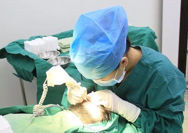 在需要移植的部位一定的密度均匀地将毛囊插入其中