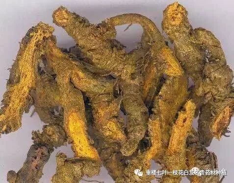 黄连——株高15-25厘米。根状茎黄色,常分枝成簇生状,形如鸡爪,节多而密,生多数须很。复叶基生,叶片卵状三角形,3-5全裂,裂片再作羽状深裂。春季开黄绿色花,2歧或多歧聚伞花序,有花3-8朵。春末夏初结果。种子长椭圆形,褐色。 根状茎用作中药时有泻火解毒,清热燥湿功效,可治时行热毒、高热烦躁、泄泻痢疾、口疮、痈疽疔毒等症。药理试验证明,有抑菌及抗病毒、抗原虫作用,并能降低血压,扩张冠状动脉。黄连含小檗碱、黄连碱等多种生物碱,另含黄柏酮、黄柏内酯等成分。