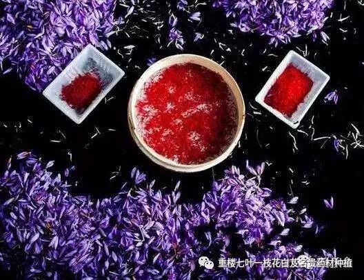 藏红花——原产地是希腊,我国是引进过来的,一公斤要几万。藏红花味甘,平,无毒。主心忧郁积,气闷不散,久食令人心喜。可治疗头疼、牙痛,有利尿、养神、美容、壮阳、解毒、降压、活血等功能。印度人用藏红花治疗发烧、抑郁症、关节炎、虚弱和不育症等。