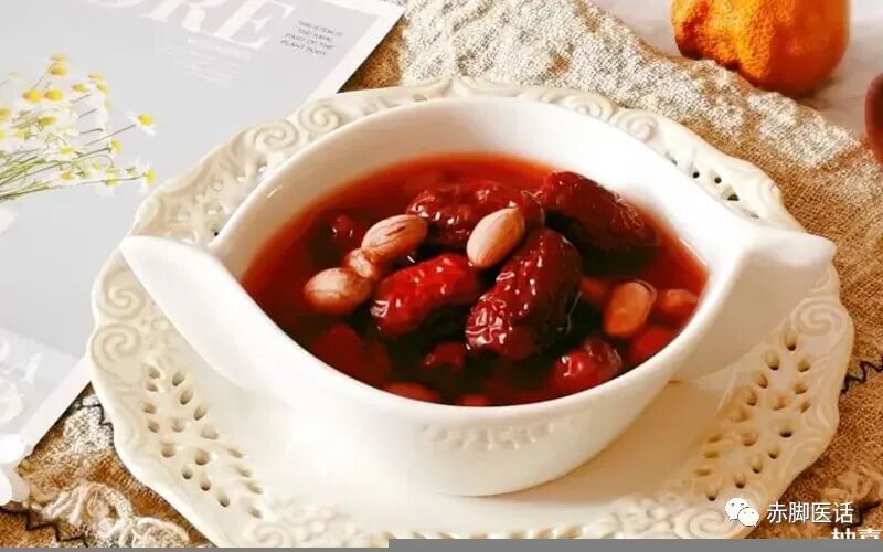做法:做法非常简单,带皮花生和红枣一起炖煮40分钟,然后加入红糖,稍煮一会儿即可食用。