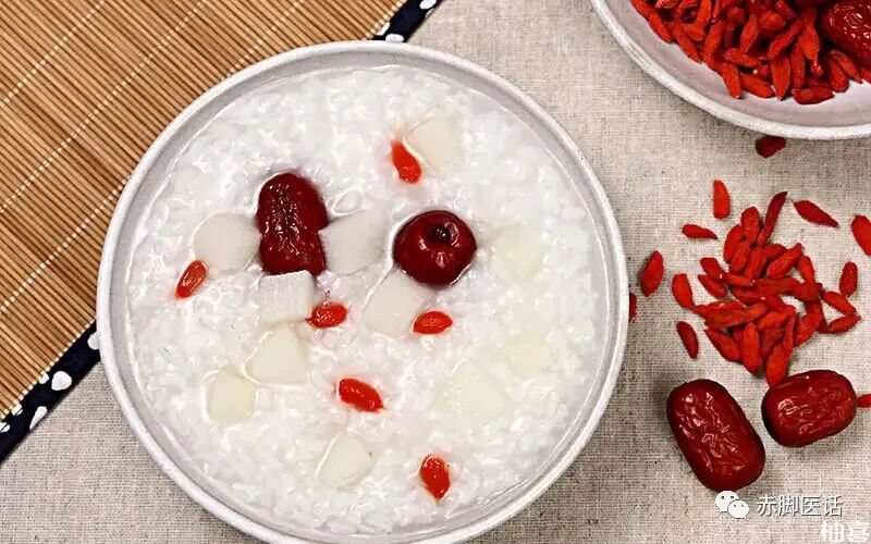 做法:把洗干净的粳米和薏米用冷水浸泡3小时,然后捞出晾干水分;再把山药、荸荠去皮,切成小丁或者打碎;把米下锅加水,煮至开花时加入红枣;等到薏米软烂时倒入山药和荸荠,再煮15分钟即可。