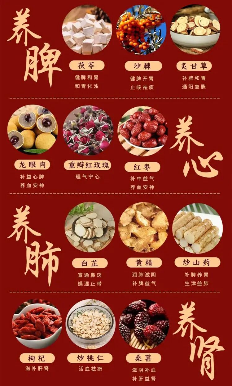 都是药食同源成分,更加温和,能被脾胃吸收,做到真正的补气血。