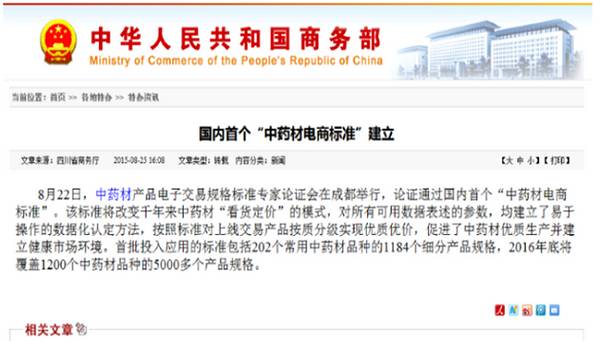 中药材互联网电商流通标准建立