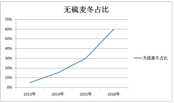 2013年-2016年产地无硫麦冬占比