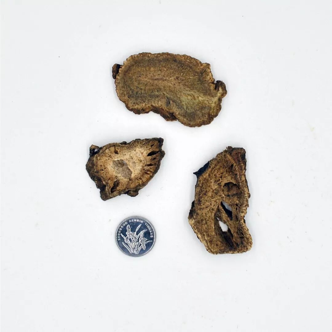 眼观可见其油气厚重,根茎粗,无空心,下方有空心,质地较脆,有效成分少