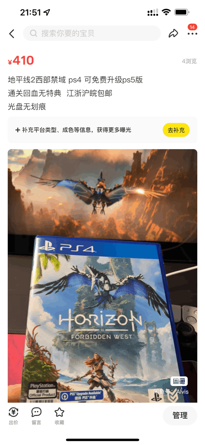 有没有要ps4 ps5游戏的好兄弟 出一个地平线2 💰355