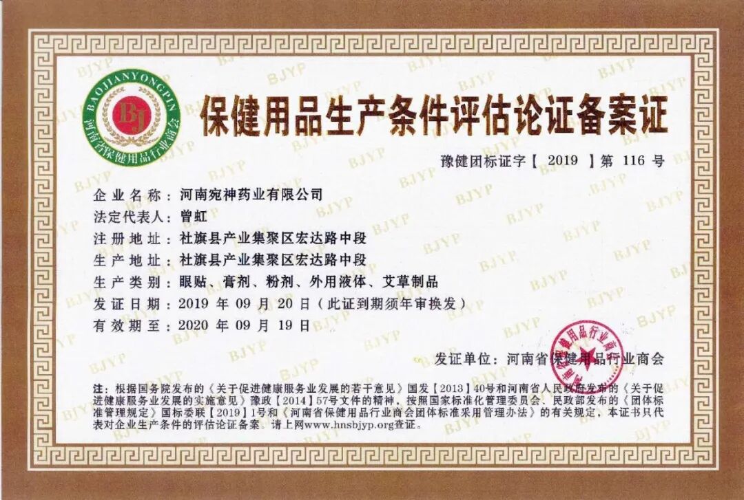 河南宛神药业有限公司是由专业生产眼贴二十年的老字号生产厂家南阳宛神科技有限公司新成立的一家拥有保健用品生产许可证和消毒产品生产许可证双资质的现代化生产企业。