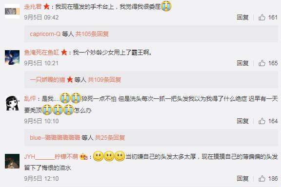 一踏入这个社会压力大就开始掉头发,后来熬夜越来越晚,就掉得越来越凶。我发际线本来就不低好吗?洗头的时候都不敢使劲抠,怕一抠掉更凶。说用个润发乳顺一下头发,结果直接顺掉,(哔——)活不下去,看到心子紧。