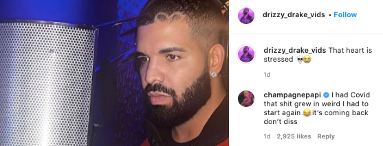Drake无奈的表示,自己之前感染过新冠病毒,然后发型就变得很奇怪了。