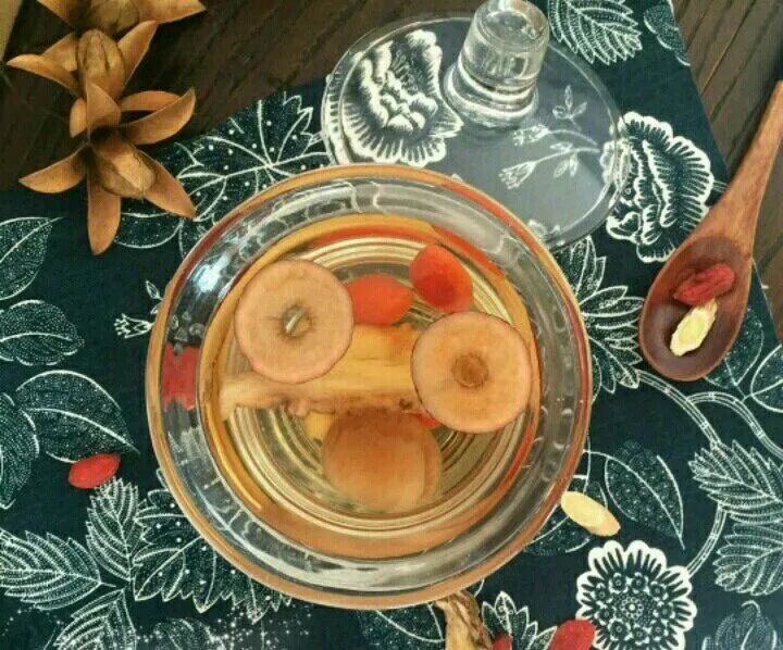 2、煮沸清水,各种药材,武火煮20分钟,转小火煲两个小时,下盐调味即可食用。