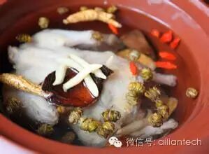 选料:选择人参、当归、枸杞、黄芪、山药、莲子、金线莲、石斛等材料。另外,可根据个人身体状况选择汤料。如身体火气旺盛,可选择如冬瓜、莲子、金线莲、石斛等清火、滋润类的中草药;身体寒气过盛,那么就应该选择参类作为汤料。