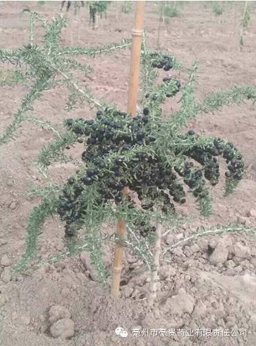 7、黑枸杞又名黑果枸杞,枸杞属类棘刺灌木,原产地为青海海西州柴达木盆地周边,昼夜温差较大,自然生境条件一般较为严酷。独特的环境造就了黑枸杞喜阳、耐寒、耐旱、耐碱、耐瘠薄的生活特性和极高的营养价值,黑枸杞含有4.3%花青素是蓝莓18倍和大量有益微量元素,可预防并治疗高血压、冠心病、糖尿病、脑血栓等多种疾病,并有预防癌症和延年益寿等功效。保健价值极高,2011年4月16日,新华社发布消息证明:黑枸杞提取物在提高免疫力、治疗心血管系统疾病、降血脂、抗动脉硬化、抗肿瘤的药物中均有广泛的应用。栽植以肥沃、地势高燥排水良好的弱碱性沙壤土为佳,自然寿命在40-60年。黑枸杞的效益可望比红枸杞提高10倍以上,根据这几年研究人员的分析比较,丰产期的黑枸杞每株年可产鲜果1.5-3.5公斤,每亩黑枸杞(以每亩550株合理)的鲜果产量可达800-1100公斤之间,干果产量在200公斤右,每亩每年的纯收益在5-8万元以上。