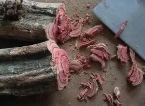 一刀见血——鸡血藤:鸡血藤貌似有好几种。根茎断开之后,有一圈圈血渍,惊艳异常。此物味苦微甘。有活血舒筋、养血调经之效。主治腰膝关节痛、风湿麻痹、肢体瘫痪、月经不调。貌似泡酒效果较好。