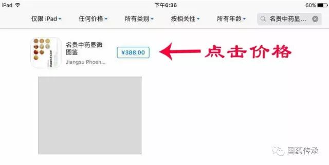 三、选中搜索,出现对应APP,点击箭头所示价格: