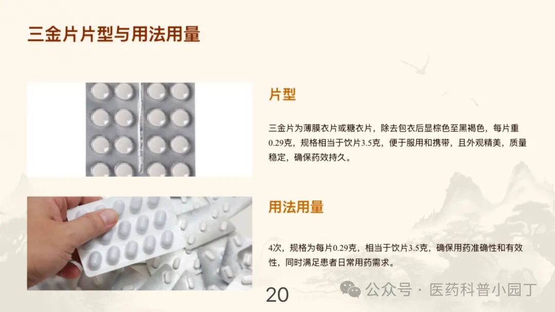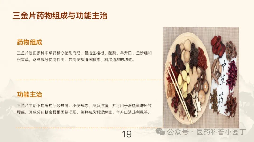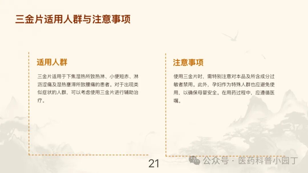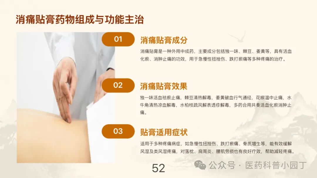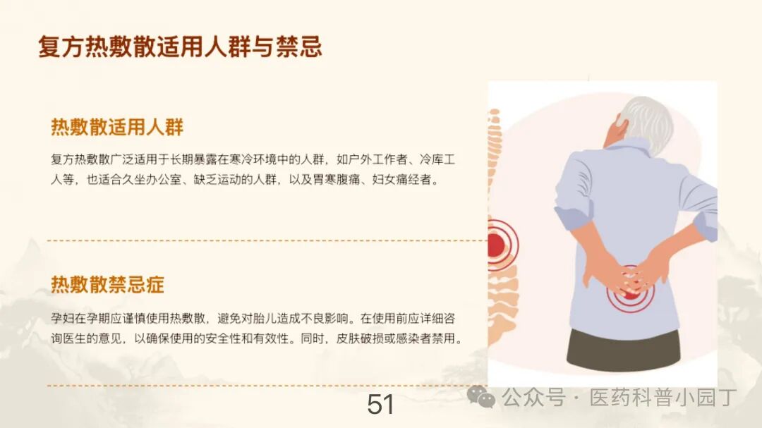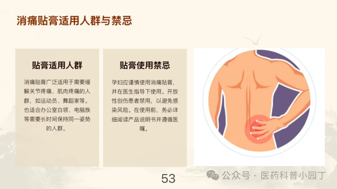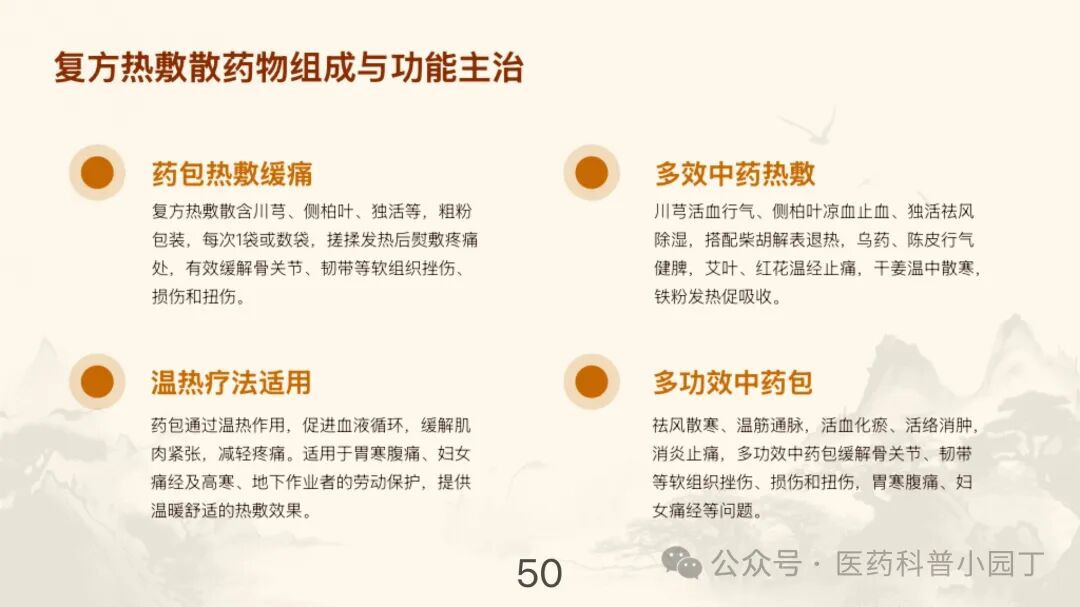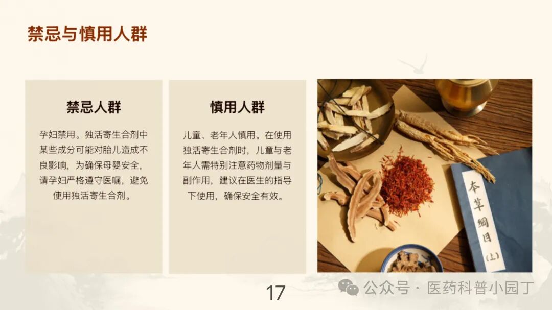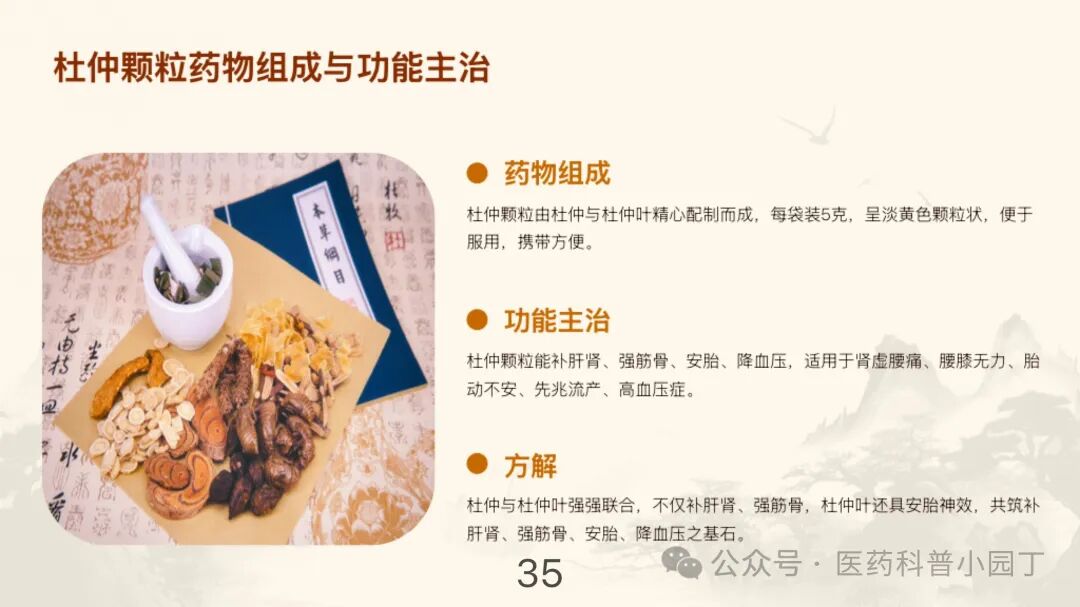 一、独活寄生合剂• 药物组成:独活、桑寄生、秦艽、防风、细辛、当归、白芍、川芎、熟地黄、杜仲(盐炙)、川牛膝、党参、茯苓、甘草、桂枝。• 功能主治:养血舒筋、祛风除湿、补益肝肾。用于风寒湿闭阻、肝肾两亏、气血不足所致的痹症,症见腰膝冷痛、屈伸不利。• 用法用量:口服,一次20ml,一日3次,用时摇匀。• 注意事项:孕妇禁用;儿童、老年人慎用。二、三金片• 药物组成:金樱根、菝葜、羊开口、金沙藤、积雪草。• 功能主治:清热解毒、利湿通淋、益肾。用于下焦湿热所致热淋、小便短赤、淋沥涩痛及湿热壅滞所致的腰痛。• 用法用量:口服,一次3片,一日3 - 4次。• 注意事项:对本品及所含成分过敏者禁用;孕妇禁用。三、跌打活血散• 药物组成:红花、当归、血竭、三七、骨碎补、续断、乳香(制)、没药(制)、儿茶、大黄、冰片、土鳖虫。• 功能主治:舒筋活血、散瘀止痛。主治跌打损伤、瘀血肿痛、闪腰岔气。• 用法用量:口服,一次3g,一日2次,用温黄酒或温开水送服;外用,以黄酒或醋调敷患处。• 注意事项:孕妇禁用。四、杜仲补腰合剂• 药物组成:杜仲、熟地黄、党参、当归、枸杞子、补骨脂、牛膝、菟丝子、猪腰子、香菇等。• 功能主治:补肝肾、益气血、强腰膝。用于腰腿疼痛、疲劳无力、精神不振、小便频数,对肝肾阴虚所致的腰痛有良好疗效。• 用法用量:口服,一次20ml,一日3次。• 注意事项:湿热外邪所致腰痛者忌用;瘀血腰痛或其他实邪所致腰痛者不宜使用。五、补肾强身胶囊• 药物组成:淫羊藿、狗脊(制)、女贞子(制)、菟丝子、金樱子等。• 功能主治:补肾强身。用于腰酸足软、头晕耳鸣、眼花心悸等症状。• 用法用量:口服,一次3粒,一日3次。• 注意事项:儿童、孕妇禁用。六、左归丸• 药物组成:熟地黄、山药、枸杞子、山茱萸、川牛膝、鹿角胶、龟甲胶、菟丝子等。• 功能主治:滋阴补肾、填精益髓。主治真阴不足证,症见头晕目眩、腰酸腿软、遗精滑泄、自汗盗汗、口燥舌干、舌红少苔、脉细等。• 用法用量:口服,一次9g,一日2次。• 注意事项:服药期间忌食生冷食物;孕妇、儿童慎用。七、右归丸• 药物组成:当归、杜仲、附子、枸杞子、鹿角胶、肉桂、山药、山茱萸、熟地黄、菟丝子等。• 功能主治:温补肾阳、填精益髓。主治肾阳不足引起的命门火衰、神疲气怯、畏寒肢冷、阳痿遗精、不能生育、腰膝酸软、小便自遗、肢节痹痛等症状。• 用法用量:口服,一次9g,一日3次。• 注意事项:肾虚有湿浊者不宜应用;服药期间忌食生冷食物;孕妇慎用。八、杜仲颗粒• 药物组成:杜仲与杜仲叶。• 功能主治:补肝肾、强筋骨、安胎、降血压。用于肾虚腰痛、腰膝无力、胎动不安、先兆流产、高血压症。• 用法用量:开水冲服,一次5g,一日2次。• 注意事项:外感或实热内盛者不宜服用;孕妇、高血压病、糖尿病患者应在医师指导下服用。九、鱼镖丸• 药物组成:鱼鳔、鹿角胶等多种中药材。• 功能主治:补肝肾、益精血。用于肝肾不足、气血两虚的治疗,症见腰膝酸软无力、头晕耳鸣、失眠健忘等。• 用法用量:口服,一次3g,一日2次。• 注意事项:孕妇禁用;阴虚阳亢、血分有热、胃火炽盛、肺有痰热、外感热病者慎服;宜饭前服用;年老体弱者和高血压患者慎用。十、腰痛丸• 药物组成:杜仲叶、补骨脂、狗脊、续断、当归、赤芍、白术、牛膝、泽泻、肉桂、乳香、土鳖虫。• 功能主治:强腰补肾、活血止痛。用于肾虚腰痛、腰肌劳损,症见腰部疼痛、活动不利等。• 用法用量:口服,一次4 - 6粒,一日3次。• 注意事项:阴虚火旺及有实热者忌用。十一、腰痛宁胶囊• 药物组成:马钱子粉、土鳖虫、麻黄、乳香、没药、川牛膝、全蝎、僵蚕、苍术、甘草。• 功能主治:消肿止痛、疏散寒邪、温经通络。用于腰椎间盘突出症、坐骨神经痛等的治疗。• 用法用量:黄酒兑少量温开水送服,一次4 - 6粒,一日1次,睡前半小时服或遵医嘱。• 注意事项:孕妇及严重心、肝、肾疾患者忌服;风湿热活动期服用无效;热痹患者慎用或不用;服药期间不宜从事体力劳动或有危险性工作;服药后宜卧床休息;当晚不宜喝多量白开水及茶水。十二、桂附地黄丸• 药物组成:肉桂、附子、熟地黄、山茱萸、牡丹皮、山药、茯苓、泽泻。• 功能主治:温补肾阳。用于肾阳不足,症见腰膝酸冷、小便不利或反多、痰饮喘咳等。• 用法用量:口服,水蜜丸一次6g,小蜜丸一次9g,大蜜丸一次1丸,一日2次。• 注意事项:忌不易消化食物;治疗期间宜节制房事;感冒发热患者不宜服用;阴虚内热者不适用;有高血压等慢性病且严重者应在医师指导下服用;孕妇慎用。十三、腰痹通胶囊• 药物组成:三七、川芎、独活、狗脊、牛膝、延胡索、白芍、熟大黄。• 功能主治:活血化瘀、祛风除湿、行气止痛。用于血瘀气滞、脉络闭阻所致腰痛,症见腰腿疼痛、痛有定处、痛处拒按,轻者俯仰不便,重者剧痛不能转侧,腰椎间盘突出症见上述证候者。• 用法用量:口服,一次3粒,一日3次,宜饭后服用。• 注意事项:孕妇忌服;消化性溃疡患者慎服或遵医嘱。十四、复方热敷散• 药物组成:川芎、侧柏叶、独活等。• 功能主治:祛风散寒、温筋通脉、活血化瘀、活络消肿、消炎止痛。用于骨关节等软组织挫伤、损伤和扭伤,症见局部肿胀、疼痛等,也适用于