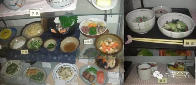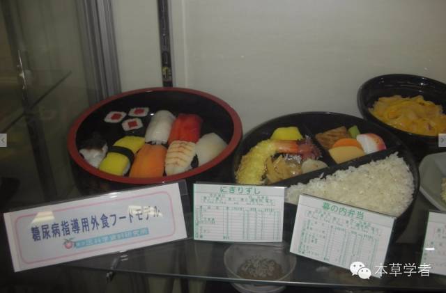 就在吃饭的餐厅里的展示架上陈列有各种保健套餐的模型。