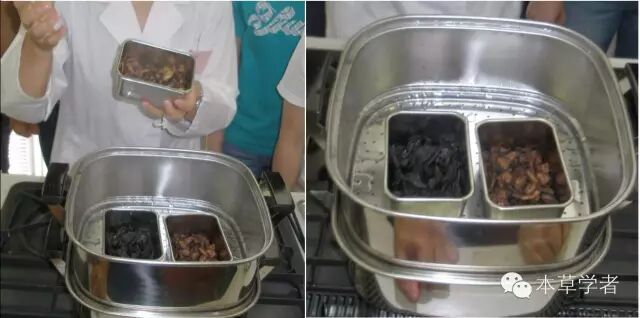 说明白了原理,还是要上实物(上图包括了各种地黄),接下来就要开始地黄炮制演示了,让学习者都看明白原料有哪些(如上图的黄酒)。
