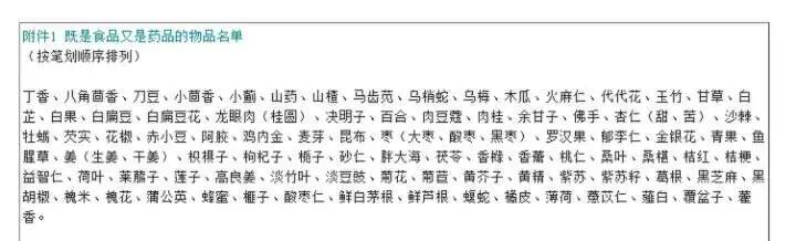 比如上文的食药同园菜单中所标的茯苓、芡实、黄精、葛根、肉桂、金银花、益智仁等材料都在卫健委官网公布的既是食品又是药品的物品名单之列。