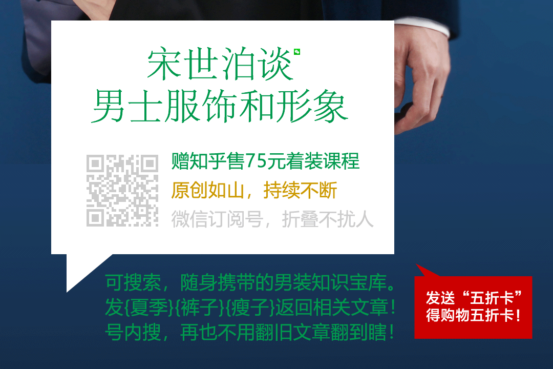 我的公众号集中我多年的文章,搜索方便,发送你想了解的关键词即可。原创+精选,搜什么有什么,是您随身携带的高级男装手册。