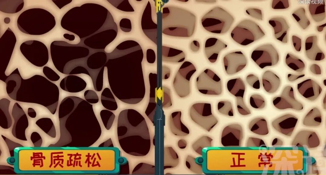 所以,骨质疏松的病人,好好的骨头全被破骨细胞拆成空洞了,就跟虫子把树木蛀空了一样,一旦受到外力触碰,嘎嘣一下就断裂了。