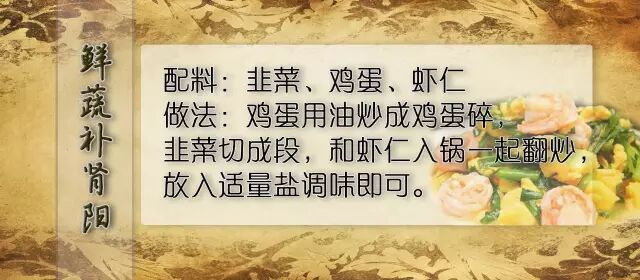 鲜蔬补肾阳:韭菜炒鸡蛋虾仁