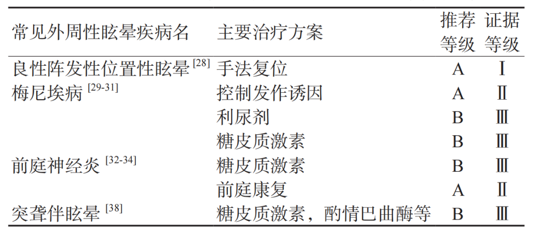表3 急诊常见外周性性眩晕的主要治疗方案