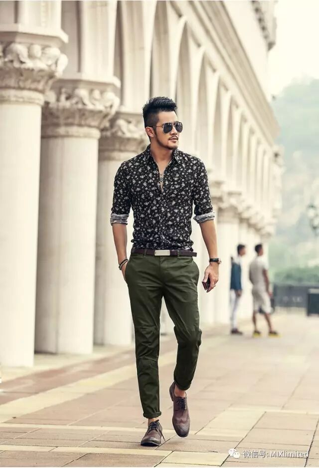 ▲型男们可以挑选花纹偏鲜艳一些的印花衬衫,让活泼的颜色抵销衬衫的严肃。除此之外,它们也非常保险好搭,很适合初阶型男们拿来试水温!