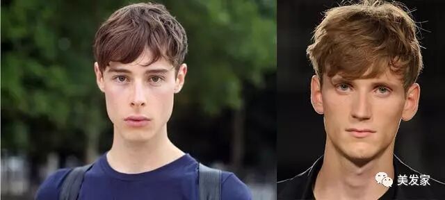 像发际线高、M额这样的问题最好就是利用刘海将发际线隐藏住,将缺点完全遮盖住。这样的发型会显得比较地年轻,暖男型,但是需要做一个烫发处理,使头发看起来更加有层次感,不然就会显得比较呆。
