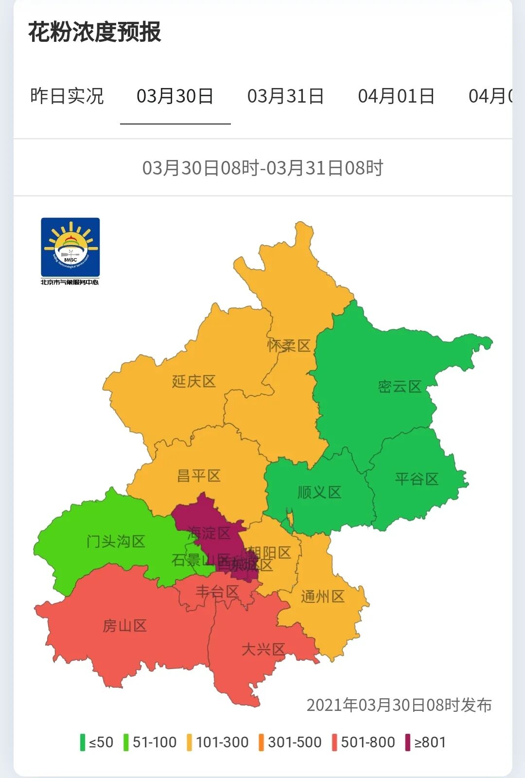 北京城区的过敏星人可以考虑去顺义、平谷、密云躲躲👆