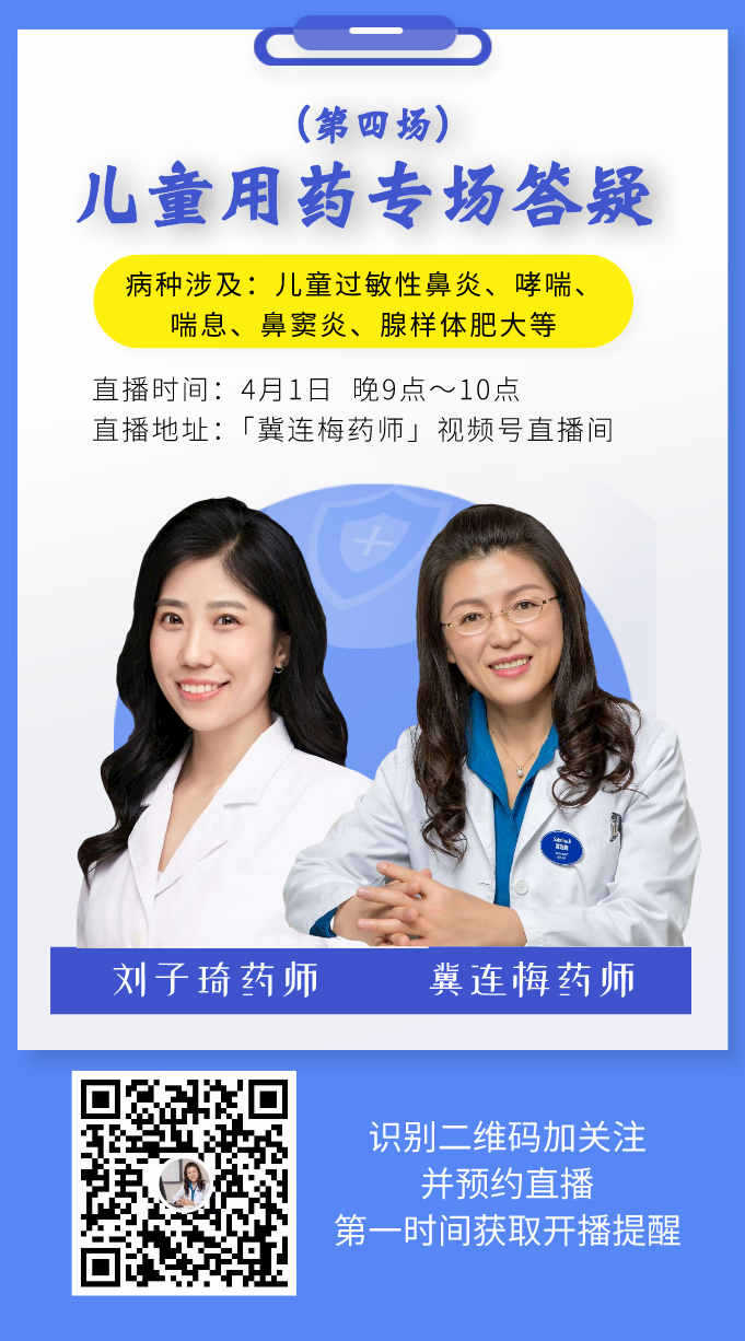 若想了解更儿童用药知识,欢迎周四(4月1日)今晚八点来我的直播间,我将哈医大一院的副主任药师刘子琦一起,为大家答疑解惑。