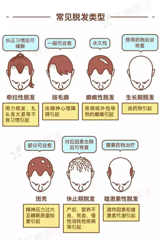 常见的脱发类型有 7 种,分别应该怎么治疗呢?