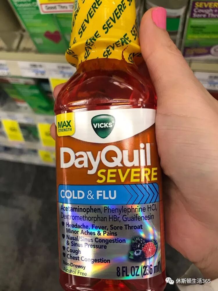 再看看这个有名的DayQuil,标记了是severe cold&flu。友情提醒一下如果你觉得自己得了flu,还是尽快去医生那边检查一下,不要耽误时间。去年美国流感大爆发还是挺可怕的,特别是家里有小孩老人的。流感疫苗还没有打的要抓紧了哦!