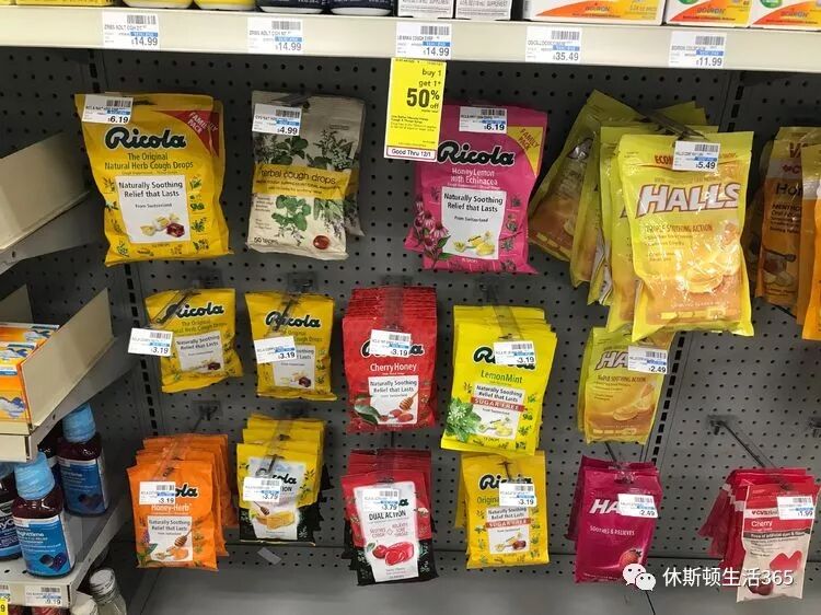 喉咙痛一般我们就推荐cough drops喉糖,喉糖我最爱Ricola,因为它好吃哦。还是天然的。Halls是比较老的一个牌子,当然各种药店自己的牌子也不错,价格也便宜。