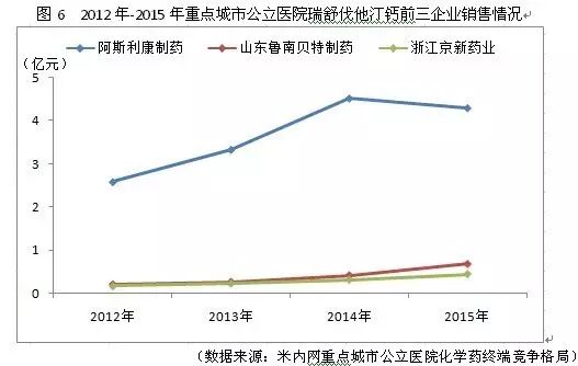随着仿制企业的不断崛起,以及CFDA在2014年10月批准了浙江海正药业的瑞舒伐他汀钙片和在2014年12月批准了海南通用三洋药业的瑞舒伐他汀钙胶囊,阿斯利康面临着愈多挑战,样本医院销售额在2015年下降接近5个百分点。