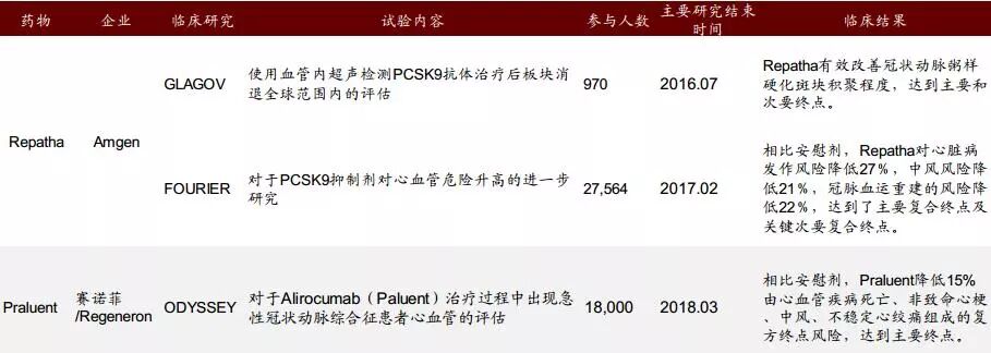 2015年2月,安进的Repatha开始在中国进行III期临床试验,目前该药已申报上市且纳入了优先审评,预计最快有望在2018年获批上市。
