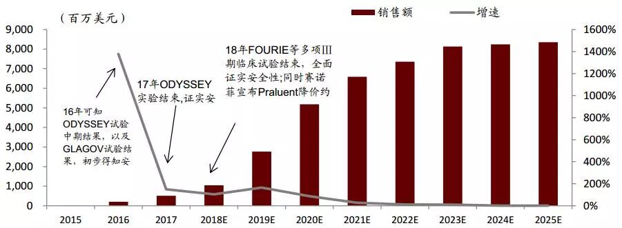▲ 2015年-2025年全球PCSK9市场规模预测