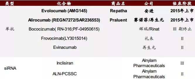 原本预计有望第三家获批的辉瑞的Bococizumab于2016年底宣布终止。目前礼来、Alnylam等针对PCSK9靶点的药物均在临床研究中。