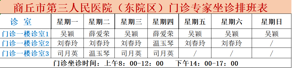(东院区)门诊专家坐诊排班表