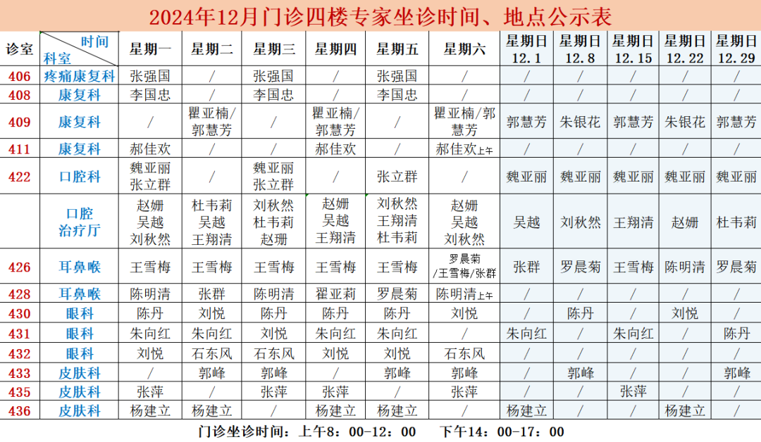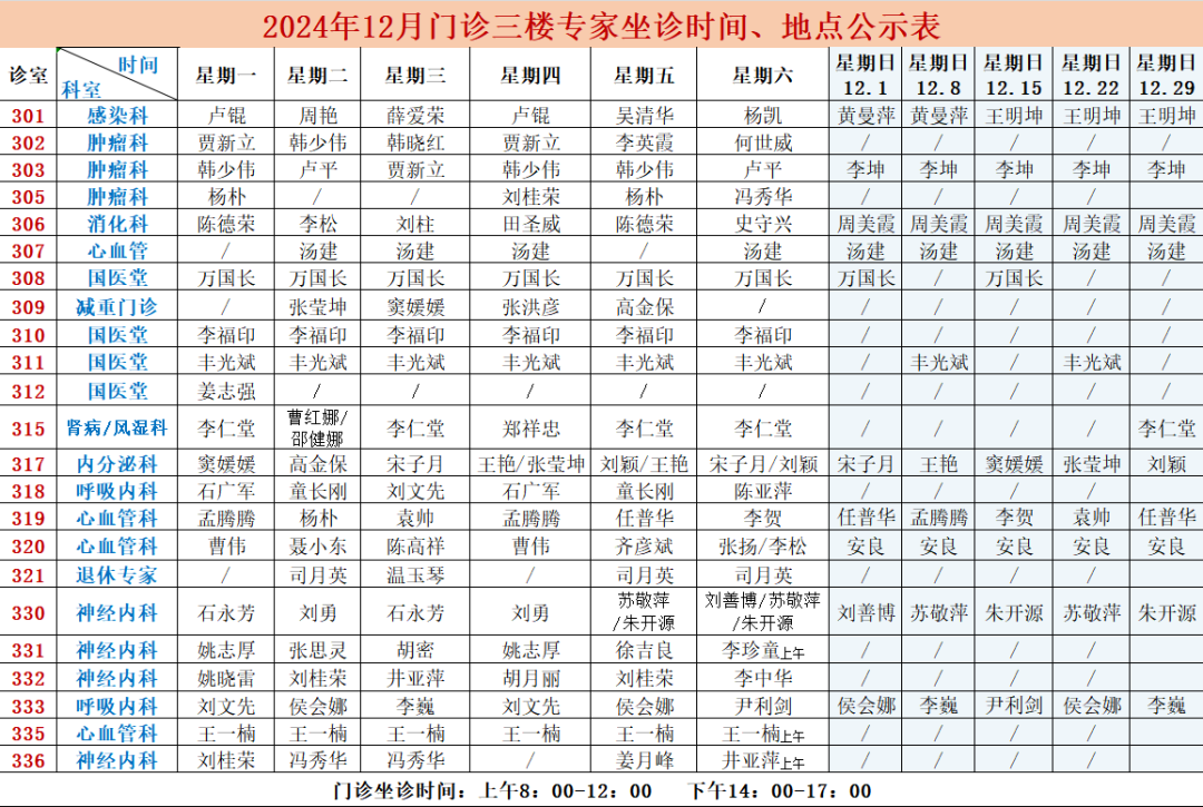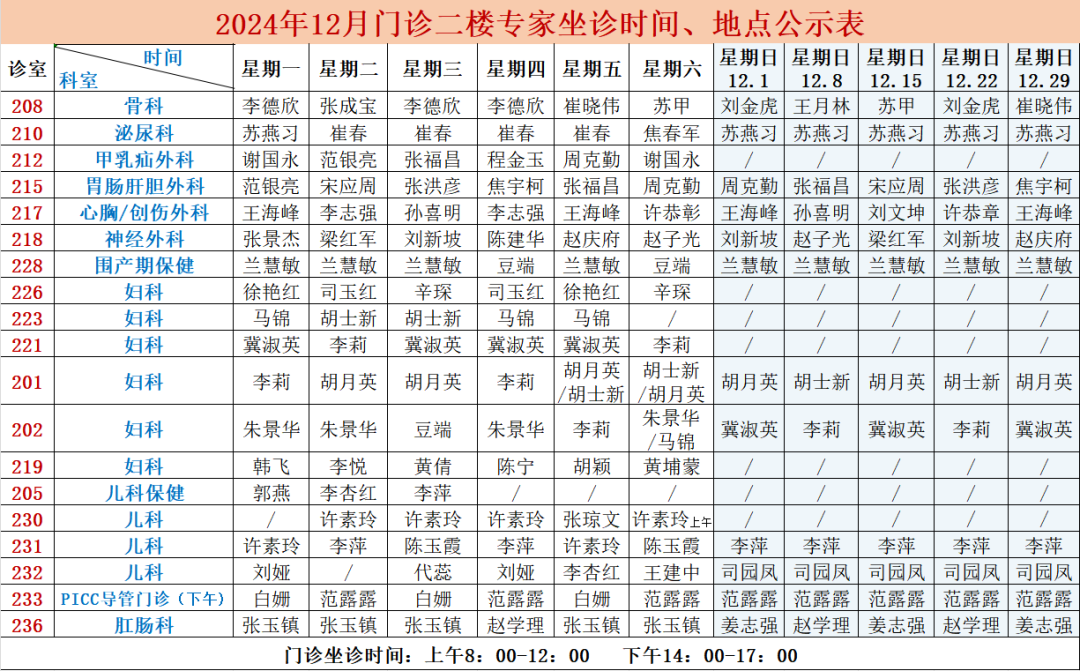 (总院区)门诊专家坐诊排班表