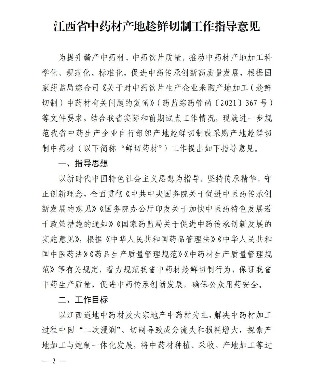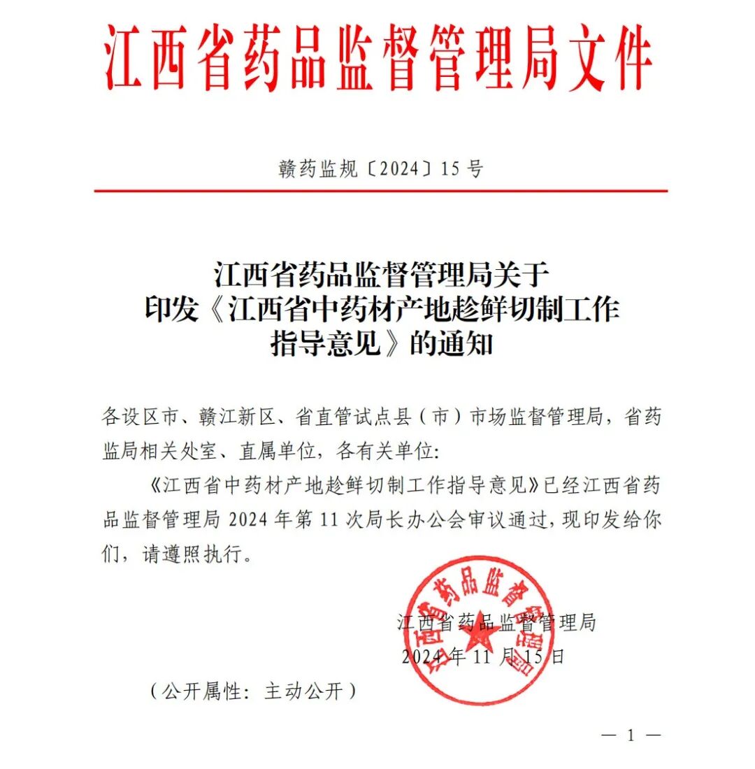 《江西省中药材产地趁鲜切制工作指导意见》的通知印发