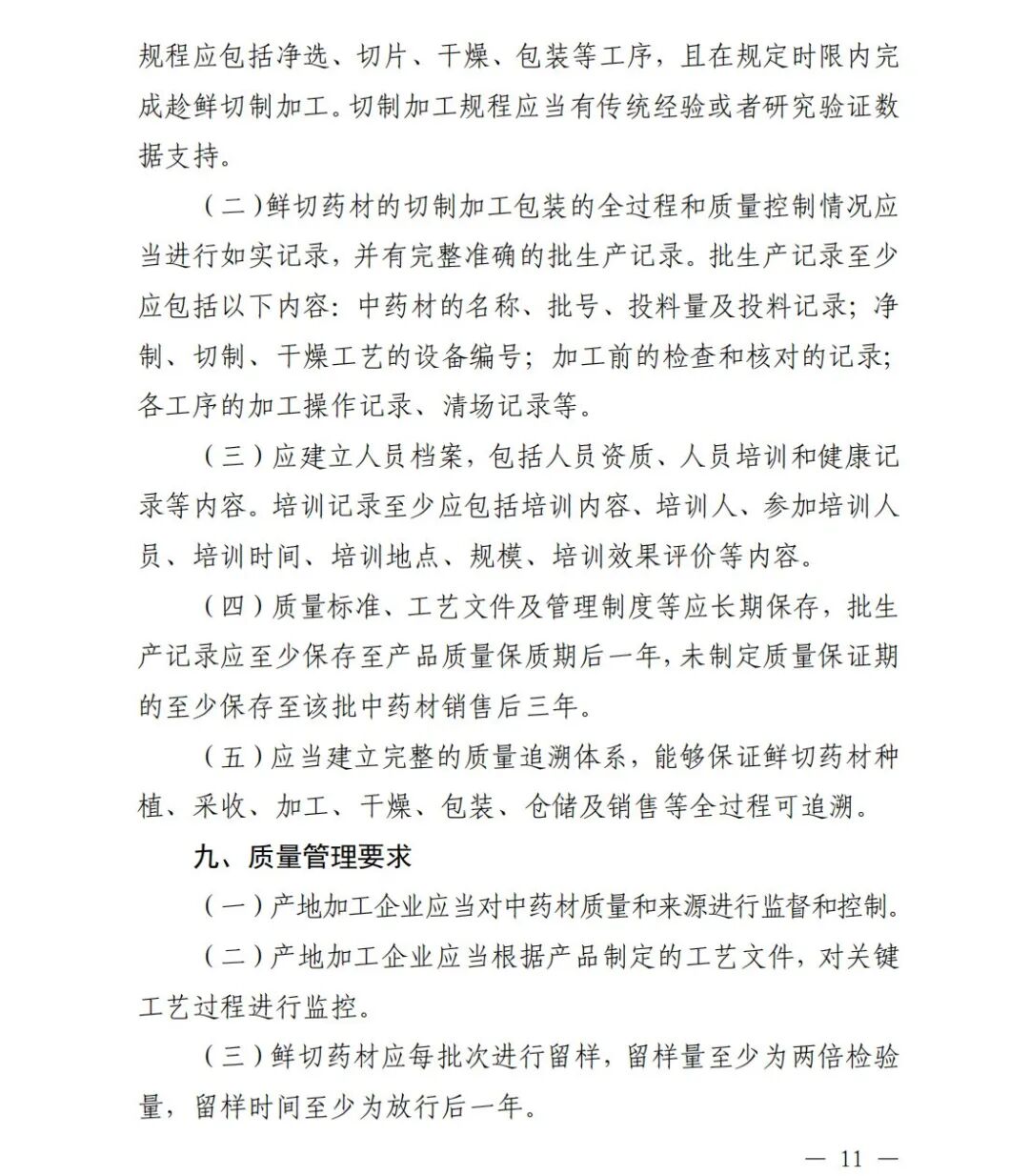 (一)产地加工企业应当对中药材质量和来源进行监督和控制。