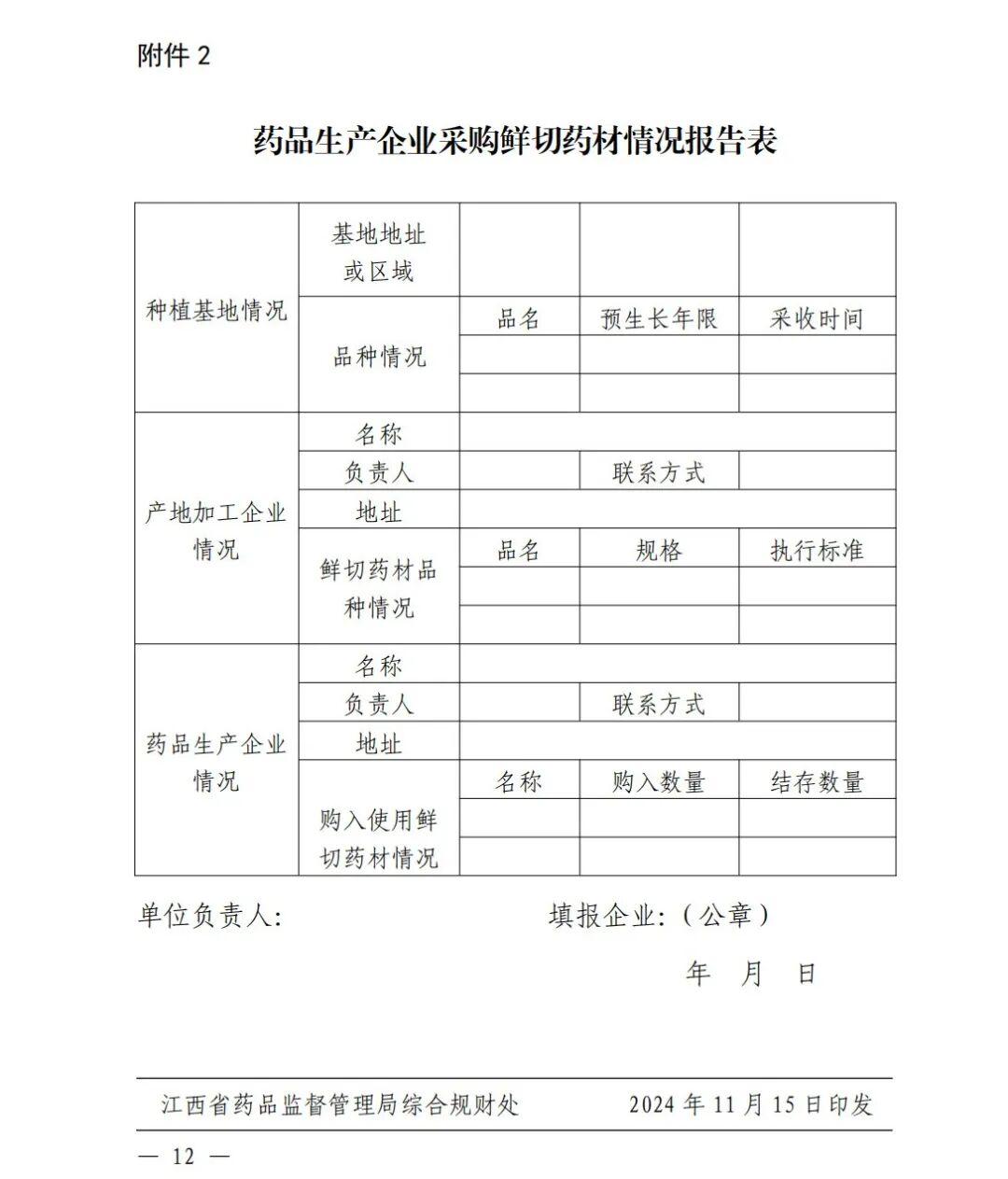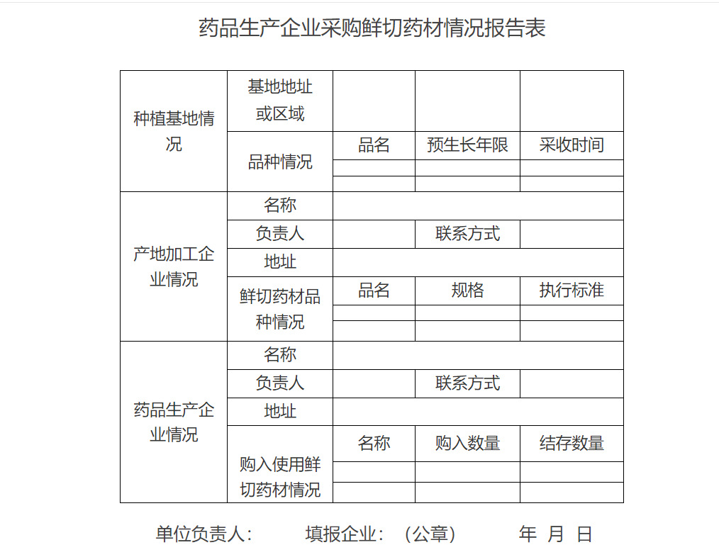 2.药品生产企业采购鲜切药材情况报告