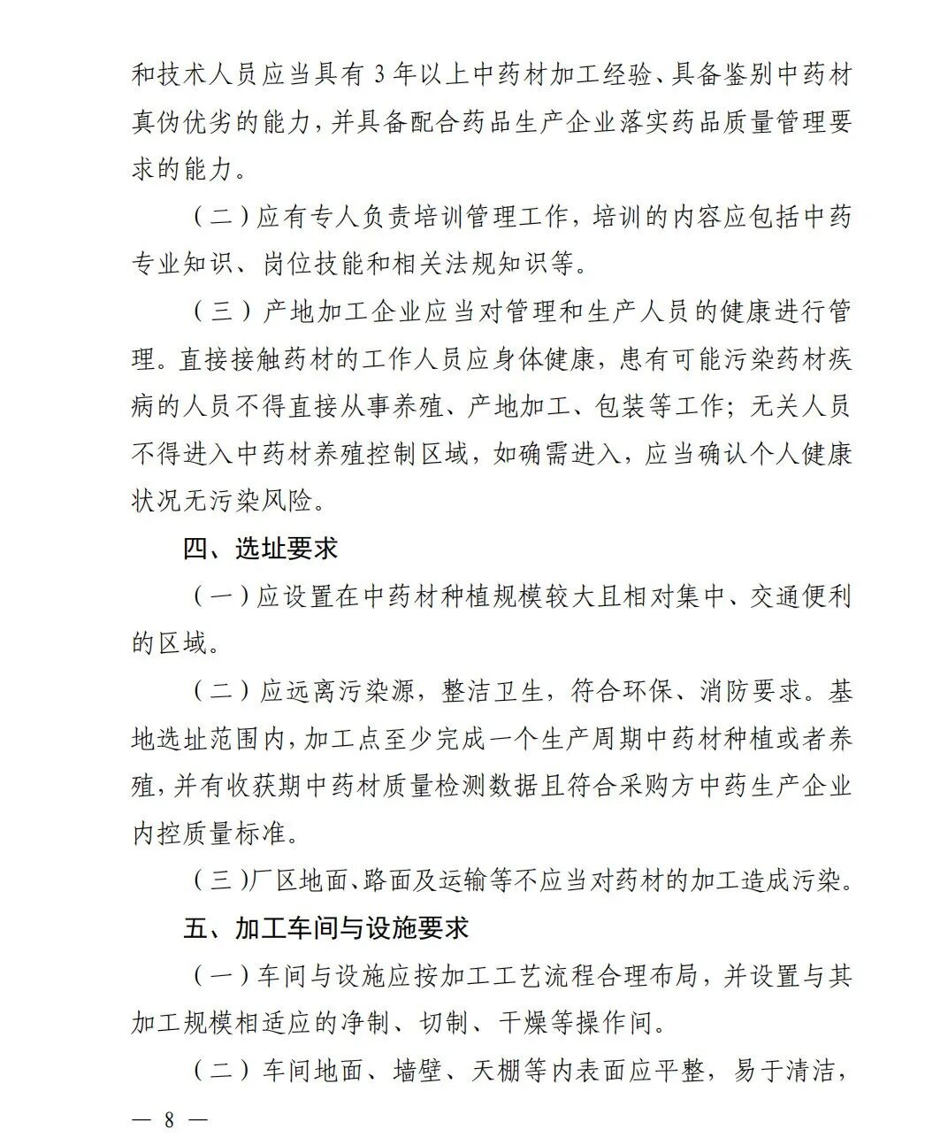 (一)产地加工企业应当配备相应的管理和技术人员,管理和技术人员应当具有3年以上中药材加工经验、具备鉴别中药材真伪优劣的能力,并具备配合药品生产企业落实药品质量管理要求的能力。