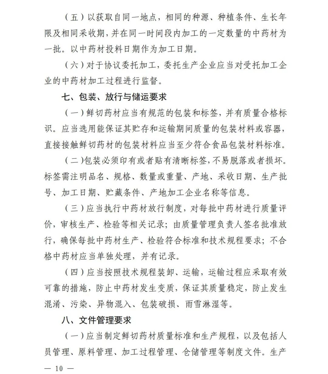 (五)应当建立完整的质量追溯体系,能够保证鲜切药材种植、采收、加工、干燥、包装、仓储及销售等全过程可追溯。