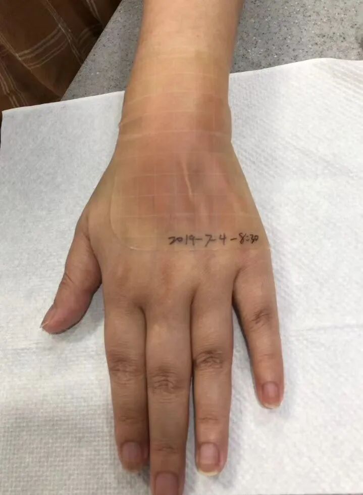 图源:作者提供(药物外渗使用水胶体透明贴)