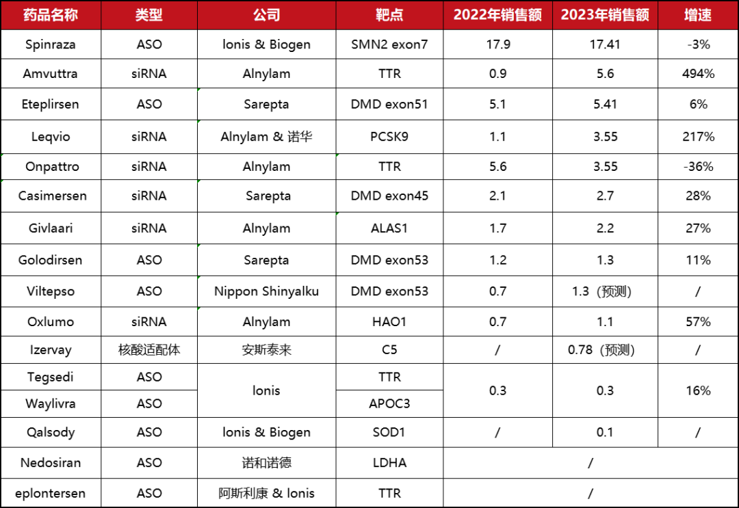 2023全球小核酸药物销售TOP10榜单出炉,总额达43.2亿美元!